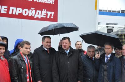 Проводить конвой и пожелать доброго пути сопровождающим прибыли: заместитель председателя ЦК КПРФ, председатель Комитета по природным ресурсам, природопользованию и экологии Госдумы, академик РАН Владимир Кашин, руководитель Штаба ЦК КПРФ по оказанию помощи жителям Юго-Востока Украины, депутат Государственной Думы Казбек Тайсаев, первый секретарь МК КПРФ, депутат Государственной Думы Николай Васильев, первый секретарь Раменского районного отделения КПРФ Олег Емельянов, секретарь МГК КПРФ, депутат Государственной Думы Владимир Родин, директор ЗАО «Совхоз им. Ленина» Павел Грудинин, представитель правительства ЛНР Игорь Гуменюк, активисты районных и городских отделений областного комитета Компартии.