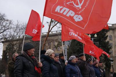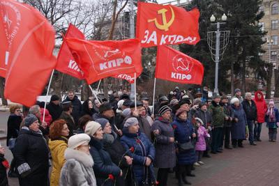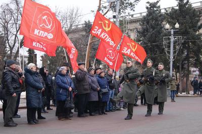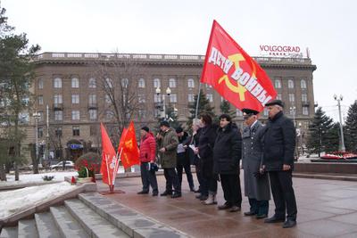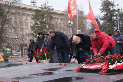 В преддверии Дня Советской армии и военно-морского флота сталинградские коммунисты и сторонники партии провели митинг и возложили цветы к Вечному огню на Аллее Героев