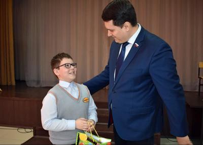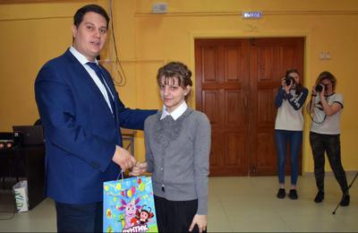 В заключение Алексей Лебедев вручил сладкие подарки победителям конкурса рисунков о космосе.