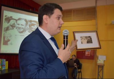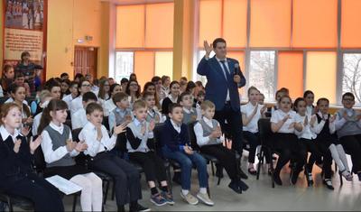 Встречу космонавта с тульскими школьниками вёл секретарь обкома, зампред Тульской областной думы Алексей Лебедев. Он рассказал ребятам о начале космической эры, основы который заложили выдающиеся советские ученые и космонавты-испытатели, показал документальные кадры первого полета человека в космос, провёл викторину на космическую тему.