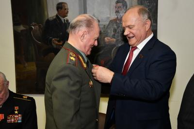 31 октября Председатель ЦК КПРФ Г.А. Зюганов наградил группу ветеранов вооруженных сил СССР памятной медалью ЦК КПРФ «100 лет Великой Октябрьской социалистической революции».