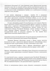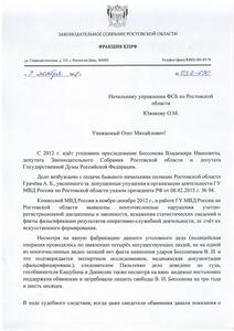 С 2012 г. идёт уголовное преследование Бессонова Владимира Ивановича, депутата Законодательного Собрания Ростовской области и депутата Государственной Думы Российской Федерации.