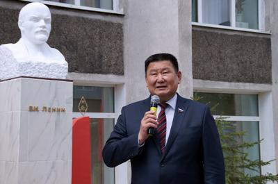 Право открыть бюст Ленина предоставляется ветерану партии, генерал-майору милиции в запасе, участнику ВОВ Н.В. Бутуханову, секретарям БРО КПРФ В.М. Мархаеву, В.А. Малышенко, Б.Ц. Цыренову, ветерану партии А.И. Татарникову.