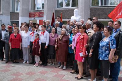 Наступает долгожданная минута, и белая ткань плавно сползает вниз, открывая бюст основателю советского государства. Раздаются аплодисменты и возгласы «ура».
