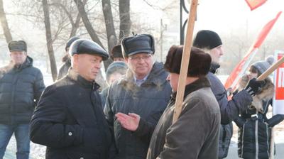 «Мы проводим пикет, приуроченный к пленарному заседанию Законодательного собрания края. Требования у нас одни – как можно больше сделать для того, чтобы облегчить жизнь забайкальцев: это высокие тарифы на услуги ЖКХ, заоблачные цены на проезд в электричках и на продукты первой необходимости. Цена за яйца в некоторых торговых точках уже превысила порог в 70 рублей. Как будто у нас торгуют яйцами Фаберже, а не куриными, - прокомментировал первый секретарь Забайкальского крайкома Юрий Гайдук. – Мы хотим дать понять и Администрации, и Губернатору, и депутатам, что те законы, которые они приняли, направлены на ухудшение жизни забайкальцев и их необходимо срочно отменять».