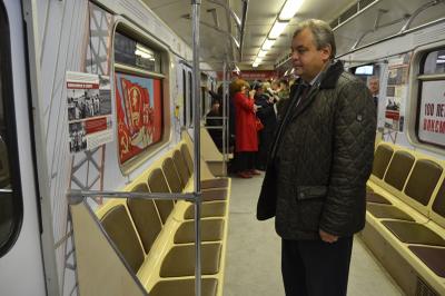 Вагон для Комсомола: К юбилею ВЛКСМ в новосибирском метро запустили поезд-музей с праздничной экспозицией