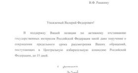 «Чуров просрочил не только обещанные 15 дней, уже все 30 прошли – ответа нет», – заявил коммунист. Рашкин обратился к члену Центральной избирательной комиссии от КПРФ Евгению Колюшину с просьбой выяснить судьбу ответа. Просмотрев реестр исходящих писем, Евгений Иванович сообщил, что ответ на жалобу депутата в нём не числится. «Владимир Евгеньевич, ну и сколько можно ждать? Вы хозяин своему слову или нет?» – задался вопросом Валерий Рашкин.