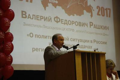 Валерий Рашкин сформулировал задачи, стоящие перед региональными отделениями партии. Это, в первую очередь, наращивание партийных рядов. В числе первоочередных целей зампредседателя ЦК перечислил организацию массовой партийной учебы, увеличение депутатского корпуса, особенно на муниципальном и региональном уровнях.