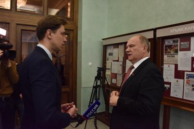 17 марта в здании Государственной Думы РФ открылась фотовыставка "Крымская весна", посвященная третьей годовщине воссоединения Крыма и Севастополя с Россией. На открытии выставки выступил Председатель ЦК КПРФ Г.А. Зюганов.