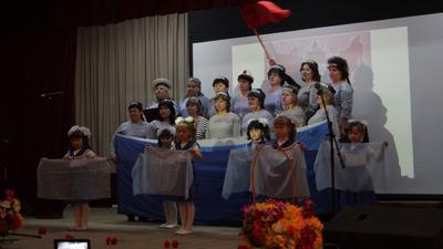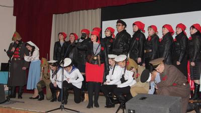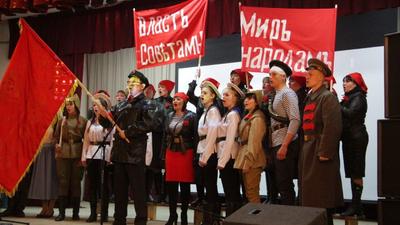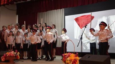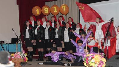 Следующим выступил сводный хор «Надежда» села Привольное, который представил песню «Наша Родина — Революция»: