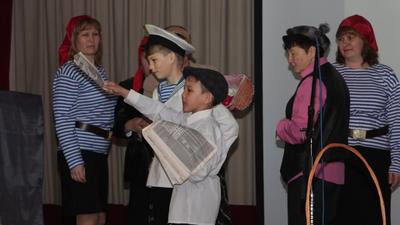 Под номером 4 сводный хор «Звуки радуги» из села Кочетное исполнил «Марш Буденного», а юные кавалеристы на деревянных скакунах с шашками весело промчались по сцене.
