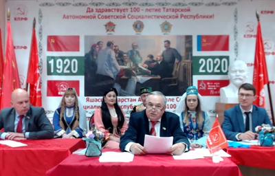 26 мая 2020 года состоялось торжественное онлайн-собрание, посвящённое 100-летию образования Татарской Автономной Советской Социалистической Республики. В мероприятии приняли участие Председатель ЦК КПРФ Геннадий Андреевич Зюганов, заместитель Председателя ЦК КПРФ Юрий Вячеславович Афонин, руководители Башкирского, Удмуртского, Чувашского, Пермского, Пензенского, Самарского и Саратовского региональных комитетов КПРФ, секретари Татарстанского республиканского комитета КПРФ Хафиз Миргалимов, Александр Комисаров, Артем Прокофьев, руководители местных отделений КПРФ Республики Татарстан, партийный актив, члены союзных общественных организаций ЛКСМ РФ, «Надежда России», «Дети войны», «РУСО», «Союз советских офицеров».