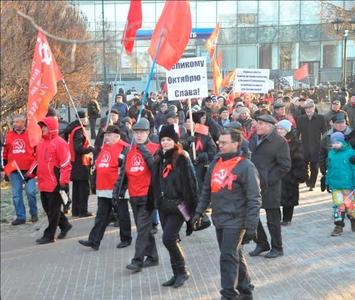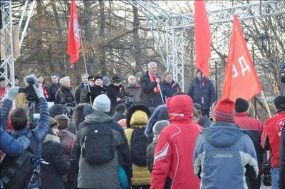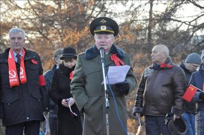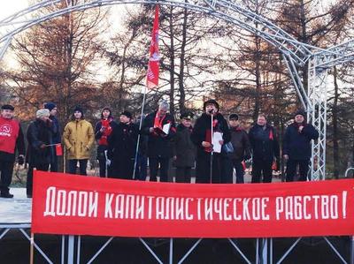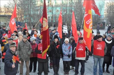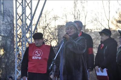 Около памятника Жертвам иностранной интервенции состоялся митинг. Его открыла первый секретарь Мурманского горкома КПРФ, руководитель областного штаба протестных действий Ольга Панина. Поздравив собравшихся с праздником, она высказала укор в адрес городских властей, назвавших коммунистов и их сторонников «чужими». Не могут быть «чужими» те, кто своими руками возводил Мурманск, перечислял на строительство домов, дворцов культуры, зданий судов, дворцов пионеров свои собственные сбережения, партийные взносы. Не смеет власть считать «чужими» тех, кто учит, лечит мурманчан, подает тепло в их дома. Скорее, чужой является власть, которая не слышит людей, лишает их права голоса, решать многие вопросы местного самоуправления.