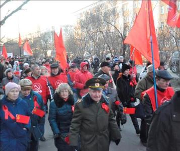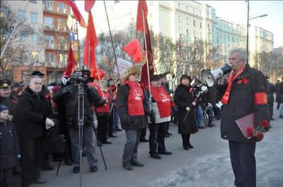 А перед этим состоялась демонстрация, на которую собрались коммунисты, сторонники КПРФ, дети войны, Союз советских офицеров, представители женского движения – «Надежда России», комсомольцы. Специально в этот день в Мурманск приехали делегации Полярного, Гаджиево, Североморска. Они были очень удивлены, что власть города-героя так негативно настроена по отношению к коммунистам и не согласовала им в выходной день провести демонстрацию по проспекту Ленина.