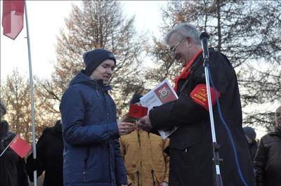 Слово взял первый секретарь Мурманского обкома КПРФ, руководитель фракции КПРФ в Мурманской областной Думе Геннадий Степахно. Он поздравил собравшихся с великим праздником, высказал уверенность, что придёт время и он вновь станет главным в нашей стране. Он вручил комсомольские билеты только что вступившим в комсомол двум юношам из Североморска. Под горячие аплодисменты он также вручил Благодарственное письмо Мурманской областной Думы ветерану Мурманского торгового порта докеру Николаю Рыбкину. На недавно состоявшееся торжественное собрание, посвященное 100-летию порта, руководство и власть его не пригласили – он также оказался «чужим» на том празднике жизни, который организуют новые хозяева.