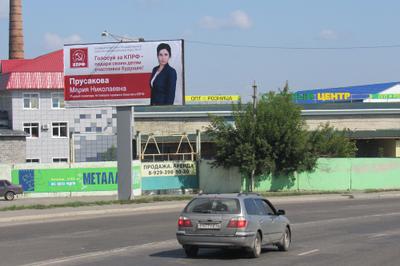 В ходе избирательной кампании партактивисты активно используют билборды для размещения агитации. Лидер алтайских коммунистов Мария Прусакова изготовила баннеры призывающие: «Голосуй за КПРФ – подари своим детям счастливое будущее!», на рекламных щитах с изображением представителей общекраевой тройки кандидатов в депутаты АКЗС нашел отражение другой призыв от компартии: «Голосуй за КПРФ – живи достойно!», кандидат в депутаты АКЗС по одномандатному округу №26 Людмила Попова разместила баннеры со слоганом: «Каждой семье – уверенность и достаток!».