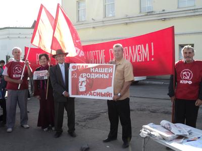 Коммунисты Центрального района на пикет вышли с лозунгом: «Россия, труд, народовластие, социализм!» и плакатом: «Флаг нашей Родины – красный!».