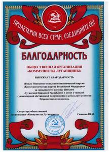 В составе груза было много адресных посылок. В том числе, для наших товарищей – коммунистов Луганщины. Луганские коммунисты распространяют гуманитарную помощь, поступающую в их адрес из региональных отделений КПРФ, среди мирных жителей ЛНР.