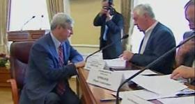 Ведущий: Выдвиженец от КПРФ Иван Мельников сегодня первым подал в Мосгоризбирком документы, необходимые для регистрации кандидата на пост мэра столицы, в том числе и папку с подписями 114 муниципальных депутатов.