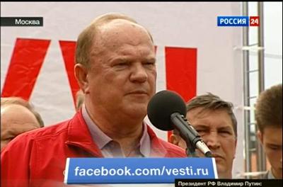 В программе "Вести" на телеканале "Россия-24" был показан небольшой видеорепортаж об акции протеста КПРФ в Москве на Театральной площади.