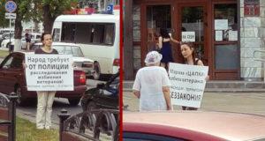 «Критикуешь евлановщину — будешь избит?! Мерзких «цапков» – к ответу!», — гласит надпись на другом протестном плакате.