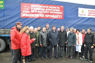 Хочу от имени председателя партии Г.А.Зюганова и от себя лично поблагодарить за работу по формированию гуманитарных грузов областной и городской комитеты Компартии, районные и региональные парторганизации, глав районов, предпринимателей, которые помогают в сборе гуманитарной помощи, команде Совхоза им. Ленина и его директору П.Н. Грудинину за предоставленные складские помещения, водителям и группе сопровождения, оперативно доставляющим груз до границы с Украиной. Так держать!».