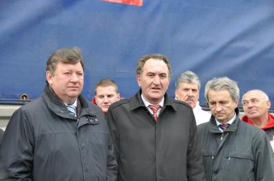 Проводить конвой и пожелать доброго пути сопровождающим прибыли: заместитель председателя ЦК КПРФ, председатель Комитета по природным ресурсам, природопользованию и экологии Госдумы, академик РАН Владимир Кашин, первый секретарь МК КПРФ, депутат Государственной Думы Николай Васильев, секретарь МК КПРФ, председатель Комитета по местному самоуправлению Мособлдумы Александр Наумов, депутат Мособлдумы, секретарь МГК КПРФ, депутат Госдумы Владимир Родин, директор ЗАО «Совхоз им. Ленина» Павел Грудинин, активисты районных и городских отделений областного комитета Компартии.