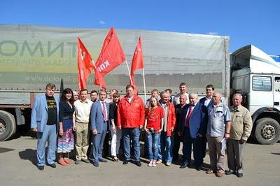Также в ходе отправки гуманитарного груза выступили: руководитель Штаба ЦК КПРФ по оказанию помощи жителям Юго-Востока Украины Казбек Тайсаев, секретарь МГК КПРФ Владимир Родин, секретарь Тульского обкома КПРФ.