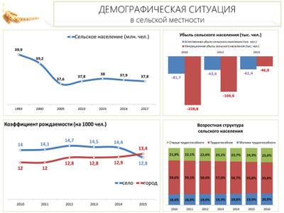 И несмотря на то, что количество сельских жителей уменьшается уже долгое время, 2015 год явился первым годом, в котором естественная убыль населения оказалась больше миграционной. Село вымирает, тем более, что резко снизилась и рождаемость, коэффициент которой на селе также впервые оказался ниже чем в городе. В итоге мы видим, как меняется возрастная структура населения – происходит неизменное старение.