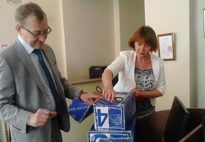 Книги серии «Жизнь Замечательных Людей» для краевой библиотеки им. Пушкина прибыли в Читу почтовыми посылками, которые депутат привёз в библиотеку и лично вручил адресату.