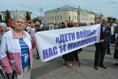 25 июля на Соборной площади Владимира собралась самая активная часть «детей войны» – более трехсот человек. Они стояли с плакатами и растяжками, призывая правительство обратить внимание на тех, кто нуждается в средствах больше, чем олигархи. Подобные митинги состоялись не только во Владимире, но и по всей стране, где ещё живы люди, лишенные Великой Отечественной войной детства.