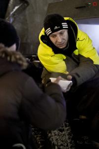 Вопреки всем ожиданиям, что на акцию придут только бомжи, к полевой кухне подходили все гуляющие в этот вечер на площади Победы: солидные пары, молодые люди, семьи с детьми, уминавшими такую нелюбимую дома кашу тут за обе щеки. Были, кончено, и те, кто пришел к полевой кухне в тот вечер целенаправленно- люди с ограниченным достатком. Специально для них тут же формировались своеобразные рождественские подарки, и малообесепечнные люди имели возможность не только плотно подкрепиться на площади, но и унести домой крупу, чай, сахар.