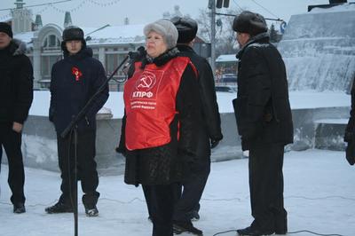 Выступавшую следом секретаря Центрального районного комитета КПРФ Татьяну Булыгину ведущий митинга, заместитель председателя Законодательного собрания Владимир Карпов представил как активиста, защитницу права пенсионеров на безлимитный проезд. Она за последнее время не пропустила ни один митинг коммунистов, и сейчас воспользовалась возможностью, чтобы высказать свою позицию: