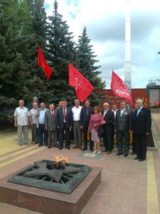 С очередным традиционным отчетом перед населением области воронежские депутаты от КПРФ всех уровней приехали в Острогожск. Перед встречей прошло торжественное возложение корзин с живыми цветами к Братской могиле погибших в годы Великой Отечественной войны земляком и Вечному огню (который, к чести острогожцев и местного руководства, горит и ни на минуту, как говорят местные жители, не гас); к памятнику В.И. Ленину на центральной площади райцентра – одного из самых крупных монументов Ильичу в Черноземье.