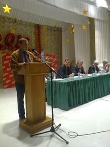 С.И. Рудаков в своем выступлении остановился на ситуации в стране и области, особо отметив сложное военно-политическое и социально-экономическое положение на юго-востоке Украины, граница которой проходит в нескольких десятков километрах от Воронежской области и Острогожского района, и подчеркнул, что, несмотря на наметившиеся конструктивные шаги руководства РФ и Воронежской области, только коммунисты поднимают острые вопросы и проблемы, которые существуют в обществе, только КПРФ всегда выступает от имени и на защите прав народа. А.Е.Рубцов напомнил, что именно Острогожск издревле стоял стеной на пути инородных завоевателей – и монголо-татар, и тевтонских рыцарей, и немецко-фашистских захватчиков, и ныне продолжает стоять на защите мира, свободы и справедливости. И в авангарде этой борьбы действуют сегодня острогожские коммунисты.