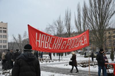 Празднование 359- й годовщины Переяславской Рады продолжилось митингом, состоявшегося на площади перед Мариупольским городским советом, где под красными флагами собрались коммунисты Мариуполя и жители города.