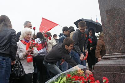 Участники митинга почтили минутой молчания память героев-освободителей города Ростова-на-Дону и возложили цветы к стеле города воинской славы.