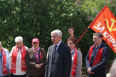 Перед собравшимися выступил и депутат Госдумы, член ЦК КПРФ Александр Куликов, который, выполняя поручение лидера партии Геннадия Андреевича Зюганова, специально приехал на открытие, поблагодарил коммунистов и жителей района за их работу по восстановлению памятника В.И. Ленину.