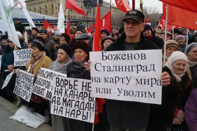 Вчера на площади Павших Борцов коммунисты и общественники выразили протест политике губернатора Боженова. Митинг в Волгограде собрал свыше 2 тысяч человек. По словам выступающих, в регионе не решаются сельские и городские проблемы, а, следовательно, «нетрудоспобным» не место в правительстве. Митинг, организованный сталинградским обкомом КПРФ, не мог остаться незамеченным властью, поэтому сопровождался провокациями.