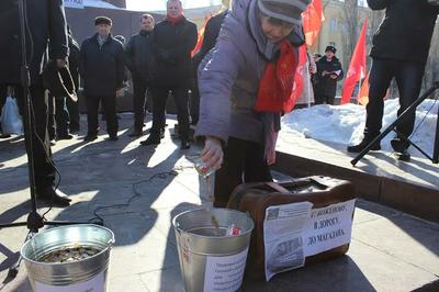 Мероприятие, организованное Сталинградским обкомом КПРФ, стало итогом акции «Отдай последнюю копейку Боженову», которая проходила в районах области с 14 февраля. Одновременно со сбором пожертвований активисты КПРФ собирали подписи ЗА отставку губернатора. Собрано около 60 тысячей подписей.