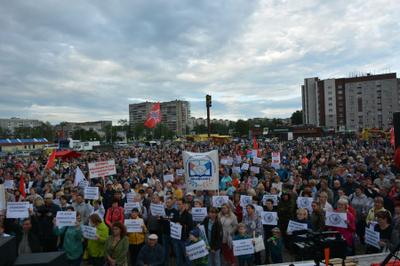 Под знаменами КПРФ, организатора митинга, собрались люди разных политических взглядов и убеждений, разных профессий и социального статуса, объединенных общей целью — не допустить принятия антинародного законопроекта и защитить свои социальные права.