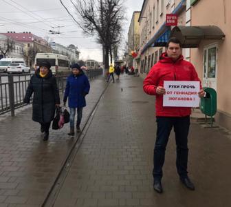 Вопреки противодействию местных властей, тульские коммунисты вышли на пикеты в поддержку Геннадия Зюганова.