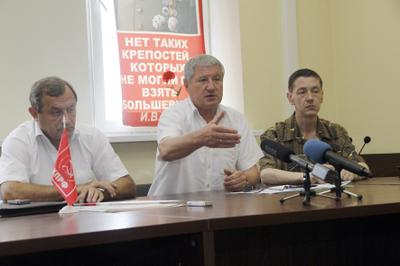 26 июля в зале Воронежского обкома КПРФ прошла пресс-конференция кандидата на должность губернатора Воронежской области от Коммунистической партии Российской Федерации Николая Ивановича Воронина с участием секретарей Воронежского обкома КПРФ С.И. Рудакова, А.И. Рогатнева и С.В. Щербакова.