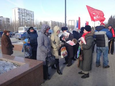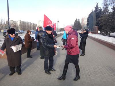 24 января во всех районах города в наиболее людных местах прошли пикеты под красными флагами, в ходе которых коммунисты в накидках с символикой КПРФ поздравляли жителей города с праздником, распространяли газеты «Правда» и «За возрождение», календарики на 2015 год с изображением И.В. Сталина. Лозунги в руках пикетчиков «Рост тарифов и цен – позор правительства!», «Мы не должны платить за их кризис», «Власть, не превращай здравоохранение в здравоХОРонение», «Нет – отмене электричек!», «Воронеж - город герой!», «КПРФ за мир!», «Фашизм не пройдёт!», «Новый Нюрнберг не за горами!», «Я не Шарли, я - Донбасс!», «КПРФ с вами, братья!», «Новороссии - да! Фашизму - нет!», «НАТО, вон из хаты!» и другие были созвучны настроению большинства воронежцев, которые охотно разбирали партийную прессу, говорили слова поддержки позиции КПРФ по Донбассу, о недопустимости преодоления социально-экономического кризиса за счёт народа и необходимости смены проводимого в стране курса. Необходимо оказывать постоянное давление на чиновников и буржуазию, заставлять их отказываться от антинародных решений, а для этого важно действовать сообща, не оставаться равнодушными и не надеяться, что кто-то улучшит жизнь за тебя без твоего участия, – убеждали земляков активисты КПРФ.