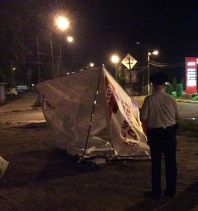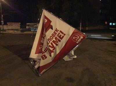 На место происшествия выехала оперативная группа РОВД Северного района, зафиксировав факт кражи и умышленного повреждения металических конструкций и агитационных плакатов кандидата от КПРФ.