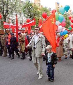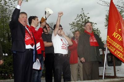 Когда краснознаменное шествие подошло к Никитинской площади, где проводили митинг власть и провластные профсоюзы, почти все стоявшие на площади люди, как по команде, повернулись в сторону коммунистов. Искренние улыбки на лицах, приветственные слова и жесты красноречиво говорили о том, что очень многие из тех, кто пока не решается бросить вызов начальству и взять в руки красные флаги, тем не менее, сердцем с КПРФ и поддерживают её лозунги.