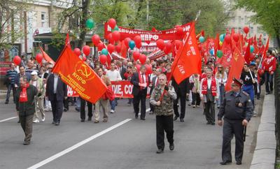 По призыву Коммунистической партии Российской Федерации на первомайскую демонстрацию и митинг под красными знамёнами вышло более двух тысяч воронежцев