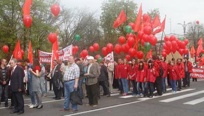 Как и все последние годы, воронежские коммунисты участвовали в общей демонстрации, организованной профсоюзами, но отдельной красной колонной. Такая тактика позволила красным флагам и жестким протестным призывам не затеряться среди голубых знамен шмаковских профсоюзов, «голубых» же флагов «единороссов», синих жириновцев и жёлтых справедливороссов, а также в пестроте цветов новоявленных партий, созданных по указке власти для внесения неразберихи в сознание людей. В то же время коммунисты не отделяли себя от других участников демонстрации, раздавали им коммунистическую прессу и листовки, знакомили их со своими лозунгами.