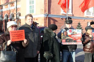 Очередной многолюдный пикет состоялся в центре Воронежа. Активисты КПРФ во главе с секретарями обкома Сергеем Рудаковым, Денисом Росликом и Сергеем Щербаковым, комсомольцы, советские офицеры, «дети войны», активисты Совета трудовых коллективов собрались под красными флагами СССР и КПРФ высказать решительное «нет» давлению буржуазных властей на руководителей-коммунистов, судебному произволу и грязи, которая льётся в СМИ в адрес П.Н. Грудинина, С.Г. Левченко и других руководителей и активистов партии. Растяжка и плакаты «Руки прочь от Грудинина и совхоза имени Ленина!», «Мы все – Грудинин!», «Руки прочь от народного предприятия и его лидера!», «Требуем остановить травлю Грудинина и Левченко!», «Единая Россия», руки прочь от губернатора-коммуниста Левченко!» знакомили воронежцев с позицией участников протестной акции.