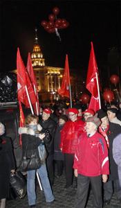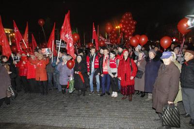 Канун 99-й годовщины Великой Октябрьской социалистической революции выдался непростым для воронежских коммунистов и всех, кто разделяет идеалы Октября: городские службы, с которыми были согласованы митинг и демонстрация, вдруг заявили, что отказываются разрешить шествие КПРФ по проспекту Революции из-за помех транспорту и пешеходам. Только после вмешательства депутатов-коммунистов удалось добиться, что колонна пойдёт по тротуару. К тому же почти сутки шёл проливной дождь. Однако за несколько часов до мероприятия ненастье отступило, а что касается власти, то она оказала себе медвежью услугу: краснознамённая демонстрация вовлекла в свои ряды десятки воронежцев, находившихся после рабочего дня на проспекте.